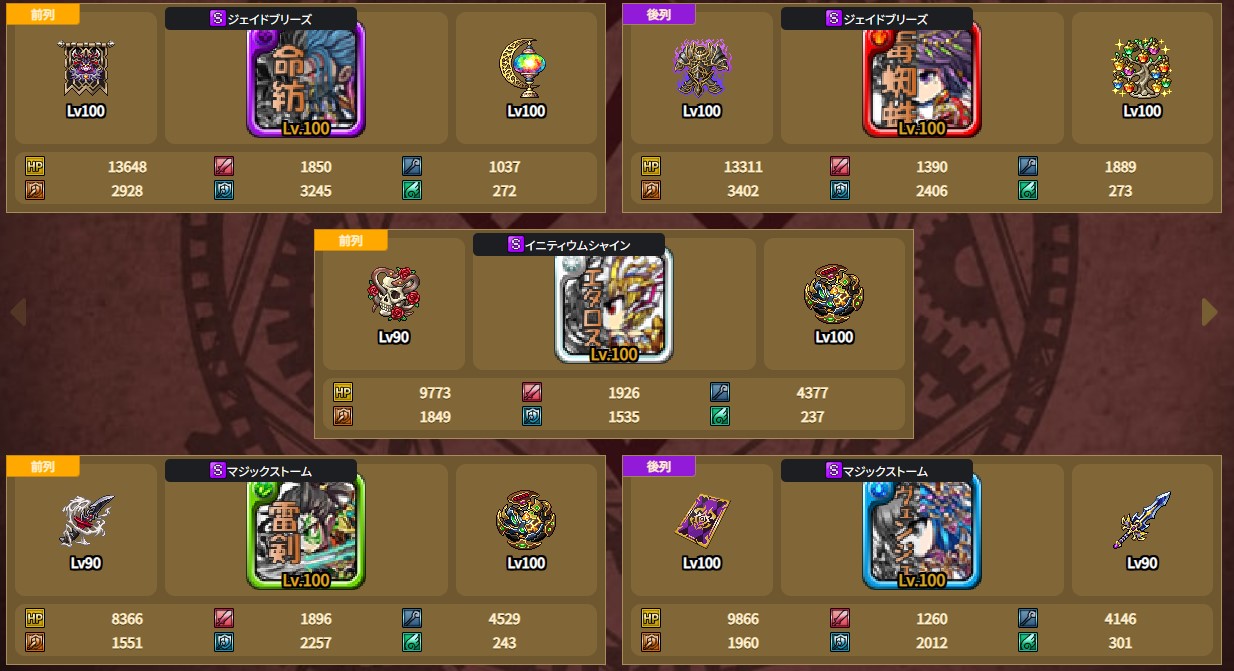 エタロス(光):パリス対策で命紡の雑念対策対象とするために前列に配置。雷剣のバフをもらってからの攻撃を出来るように雷剣よりは遅く。